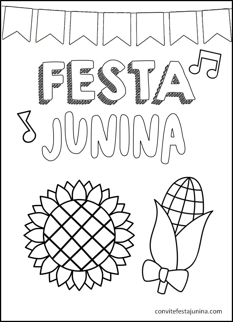 Baixe nossas imagens de Festa Junina e crie sua própria história mágica, deixe a criatividade e a imaginação de seus filhos voar. Os desenhos de Festa Junina são a oportunidade perfeita para as crianças pintarem e presentearem os seus familiares. Aqui você irá encontrar vários Desenhos de Festa Junina para colorir em JPG de ótima resolução. Na Festa Junina as emoções vêm à tona, momento ideal para as crianças desenvolverem suas habilidades criativas.
