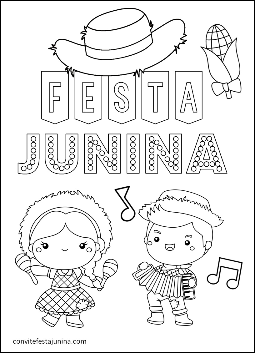 Se a sua filha ou filha também gosta de festejar a Festa Junina. Prepare todos os seus lápis, têmpera, tintas e divirta-se com desenhos para colorir de Festa Junina. Temos um grande Catálogo de adoráveis ​​imagens de Festa Junina para baixar e totalmente gratuito. Escolha os que mais gosta e vá pintar! Divirta-se escolhendo suas imagens de festa junina preferidas, imprimia e pinte!